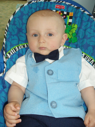 ahojky,zdravime.Gabi,Tomášek je připravenej do sněmovny,viď?sluší mu to je to fešák.na koupálku jsme byli taky,ale jen chvíly a vydupala jsem si že nejdu sama ale s manž.taky si netroufám sama,a ještě když Dáda dělá hysteráky.no ale malinkej si to užíval,a nakonec jsme stejně skončili u známých v bazénu a byl klid.Radko Gabča je teda rychlík.Sebíkovi se asi 2x povedlo postavit v postýlce a to jsem si říkala jakej je šikovnej.a lezení teprv zkouší,jenom ne po kolenou,ale jen po jednom a drouhou nohu má pod sebou.dostane se jen tak do 1 metru okolo sebe a i to mu trvá..pak už asi nemůže