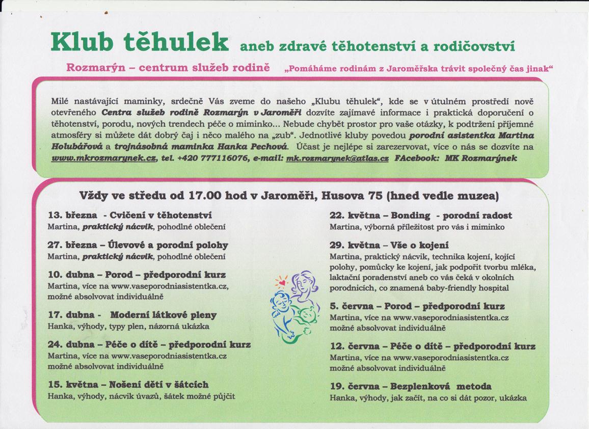 | Souvisí s: | aktivita Klub těhulek - 9 setkání - zdravé těhotenství a rodičovství (Zobrazit galerii aktivity) |
