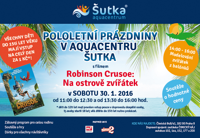 Souvisí s:aktivita POLOLETNÍ PRÁZDNINY V AQUACENTRU ŠUTKA! VSTUP JEN ZA 1 KORUNU!