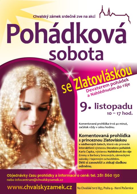| Souvisí s: | aktivita Pohádková sobota na zámku se Zlatovláskou, Devaterem pohádek a nahlédnutím do ráje (Zobrazit galerii aktivity) |