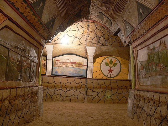 | Popis: | I když je Malovaný sklep sklepem vinným, víno se v něm kupodivu nikdy nevyrábělo ani neskladovalo. Pravděpodobně měl od počátku sloužit jako soukromá vinárna a místo k příjemnému posezení. Díky skvělé izolaci a výtečnému vínu z okolních vinic v něm bylo příjemně v kteroukoliv roční dobu a za jakéhokoliv počasí. V podzemí je jakási podivuhodná říše mořských panen, trpaslíků a alpských krajinek. Obě strany hlavní chodby i stěny pěti přilehlých salonků totiž zdobí fantasticky barevné plastické obrazy, které tu vytvořil Maxmillian Appeltauer, šatovský rodák, pověstný výtvarným nadáním. |