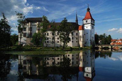 | Popis: | Kromě samotného zámku s vodním příkopem bývá hojně navštěvovaný anglický park se stádem daňků. Zámku dominuje především bílá věž, která se již z dálky odráží ve vodní hladině. Prohlídky zámku zahrnují návštěvy např. orientálního, barokního a empirového salonku, loveckého salonu a rodinné galerie, rozšířená prohlídka pak zahrnuje „Zelenou světnici“ s nástěnnými malbami z konce 15. stol. Zámecké interiéry jsou zařízeny především rodovými sbírkami Hildprandtů. Blatenský zámek patří k filmaři nejvyhledávanějším lokalitám a jako takový si zahrál v řadě filmů a pohádek, jako např. Šíleně smutná princezna či Bílá paní. Zámek je přístupný pro návštěvníky od dubna do října. Celoročně je však přístupný anglický park kolem zámku. Park o rozloze 42 ha vznikl z původní obory v 1. polovině 19. stol. V parku pokračuje tradiční chov daňka skvrnitého a lze v něm nalézt také cizokrajné dřeviny. Při levém okraji centrální louky se nachází původně barokní, dnes empírový zahradní domek z roku 1767. |