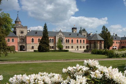 | Popis: | O dnešní francouzskou novogotickou podobu dříve barokního zámku se zasloužil kníže Kamil Rohan. Obrazová galerie je největší sbírkou francouzského portrétního umění ve střední Evropě, řezbářská výzdoba je mistrným dílem českých řezbářů. Zámek je jednou z nejvýznamnějších staveb ve stylu romantické novogotiky francouzského typu a je veřejnosti zpřístupněn ve značném rozsahu, takže jeho prohlídka poskytne návštěvníkům dokonalou představu, jak se ve 2. polovině 19. století žilo na venkovském sídle bohaté šlechtické rodiny. Anglický park (26 ha) patří k nejkrásnějším a nejbohatším botanickým sbírkám v České republice. Často zde pobývali velikáni české hudby J. Suk a A. Dvořák, proto se zde koná každoročně hudební festival „Dvořákův Sychrov a Turnov“. |