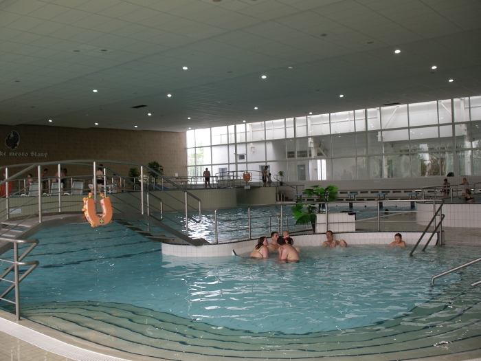 | Popis: | V areálu najdete tobogán dlouhý 87m, pětidráhový 25m dlouhý bazén o hloubce 1,65m a objemu 480m3, dětský bazén o hloubce 0,60m a objemu 28m3, divoké koryto o objemu 8m3 a Whirpool. Součástí velkého bazénu jsou tři vzduchová masážní lůžka, protiproud a dámská a pánská pára. K občerstvení návštěvníků uvnitř zařízení slouží tzv. "mokrý" bufet, který je přístupný pouze v plavkách, pro příchozí nebo odcházející návštěvníky je občerstvení zajištěno prodejními automaty ve vstupní hale. Denní kapacita areálu kryté plavecké haly je 1 000 osob. |