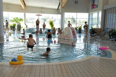 | Popis: | Kromě vodních atrakcí jsou zde k dispozici i zařízení jako pára a sauna, masáže, která jsou umístěna v prvním podlaží areálu aquaparku, a nechybí ani bar s občerstvením. Hlavní bazén je určen pro relaxaci návštěvníků. V bazénu je několik různých chrličů, vodních děl, masážní lavice a lehátka, jeskyně s bublery a vodopádem. Hlavní atrakcí tohoto bazénu je divoká řeka. Součástí bazénu jsou i dvě plavecké dráhy 25 metrů dlouhé se startovacími bloky. Teplota vody v tomto bazénu je 30 ºC. Po schodišti je přístup k atrakci whirlpool. Whirlpool je určen pro 6 osob. Teplota vody je 34 ºC. V další části bazénové haly jsou dva bazénky pro děti s vodním hřibem. Hloubka vody v těchto bazénech je 40 a 60 cm. Teplota vody je 30 ºC. Tobogán 65 metrů dlouhý vedený venkovním prostorem je přístupný po schodišti. Dojezd je v pravém rohu bazénové haly. |